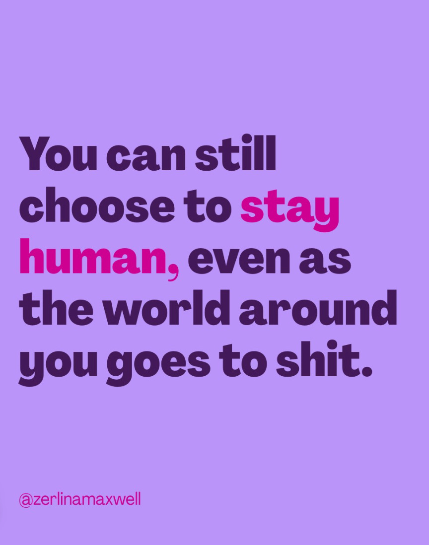 So here’s to staying human, friends, and staying kind.